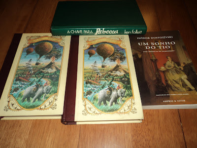 Já o meu moço aproveitou, também, para rechear as suas estantes. Diz que o arrastei para esta situação de compras de livros ao Domingo. Mas ele adora, eu sei que adora...